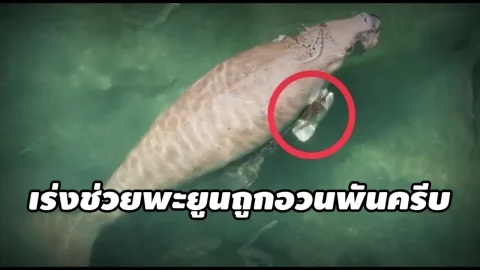 เร่งช่วยพะยูนถูกอวนพันครีบ หลังโดรนเผยภาพฝูง 8 ตัว โผล่หากินรอบเกาะลิบง
